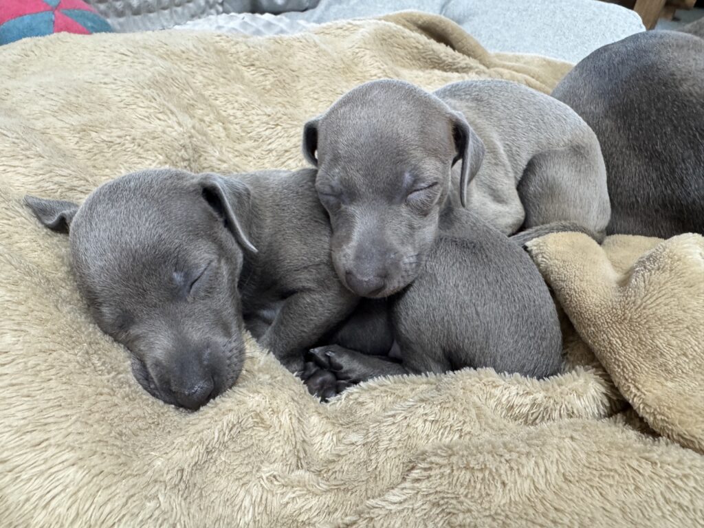 男の子1頭、女の子1頭です。どちらも毛色は濃いブルーです。